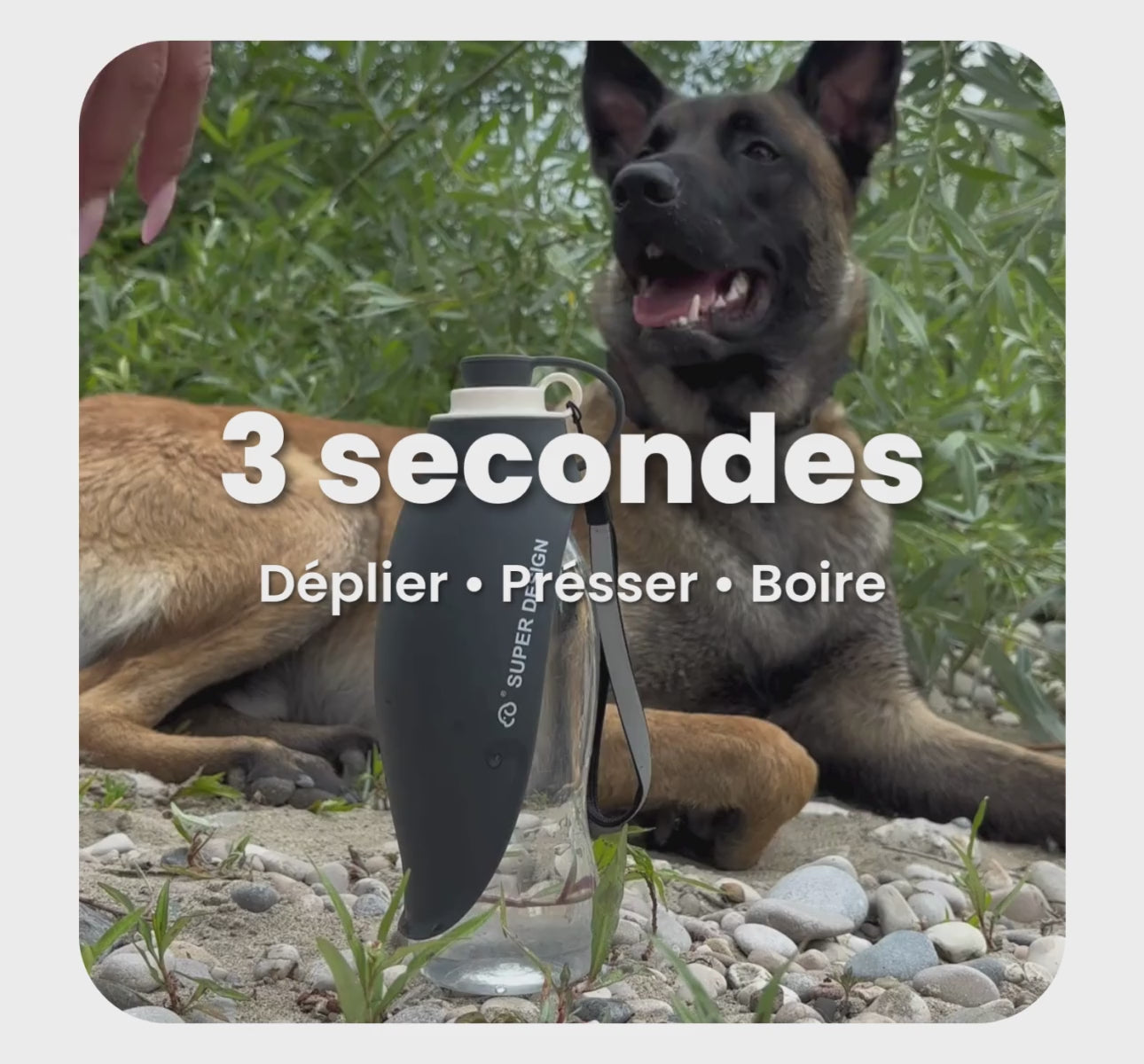 Déplié, pressé, ton chien boit directement dans le bol intégré.