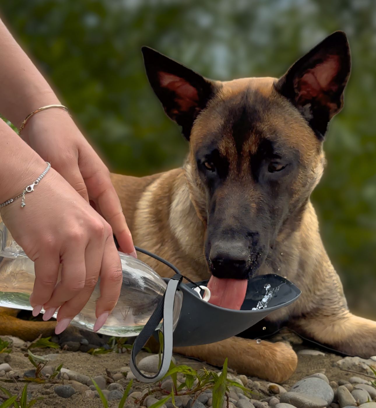 Déplié, pressé, ton chien boit directement dans le bol intégré.