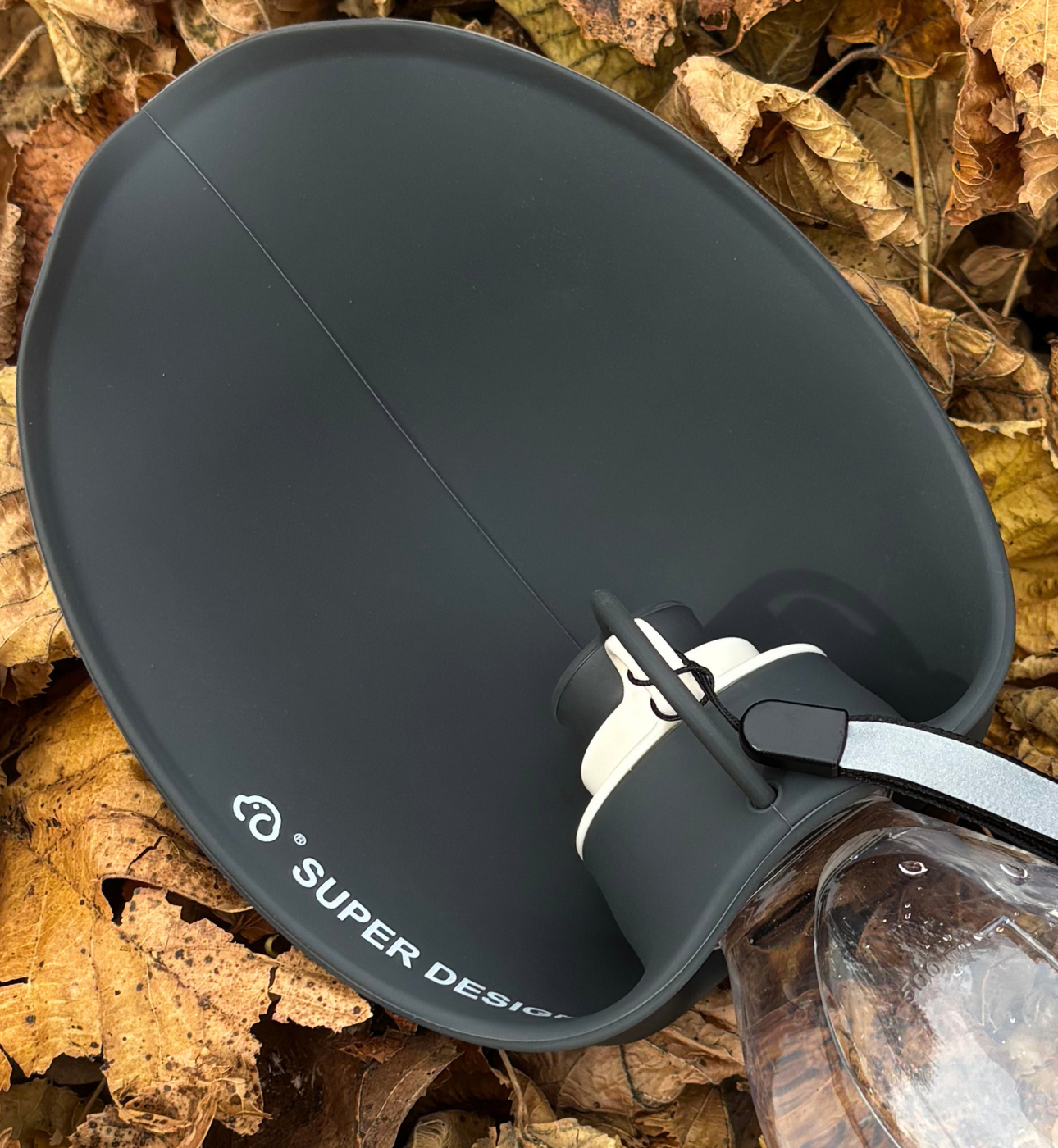 gourde pour chien noire 580 ml, bol intégré, bol déplié